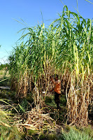 | Worker harvesting elephant grass. |